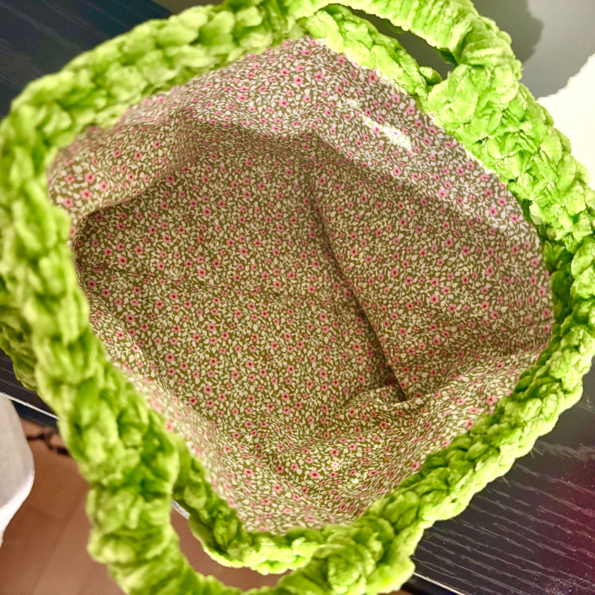 Denne limegrønne vesken er som et lite kunstverk – heklet med tålmodighet og presisjon. Den friske fargen vekker oppmerksamhet, mens den myke, kraftige garnet gir en deilig tekstur som bare håndverk kan skape.