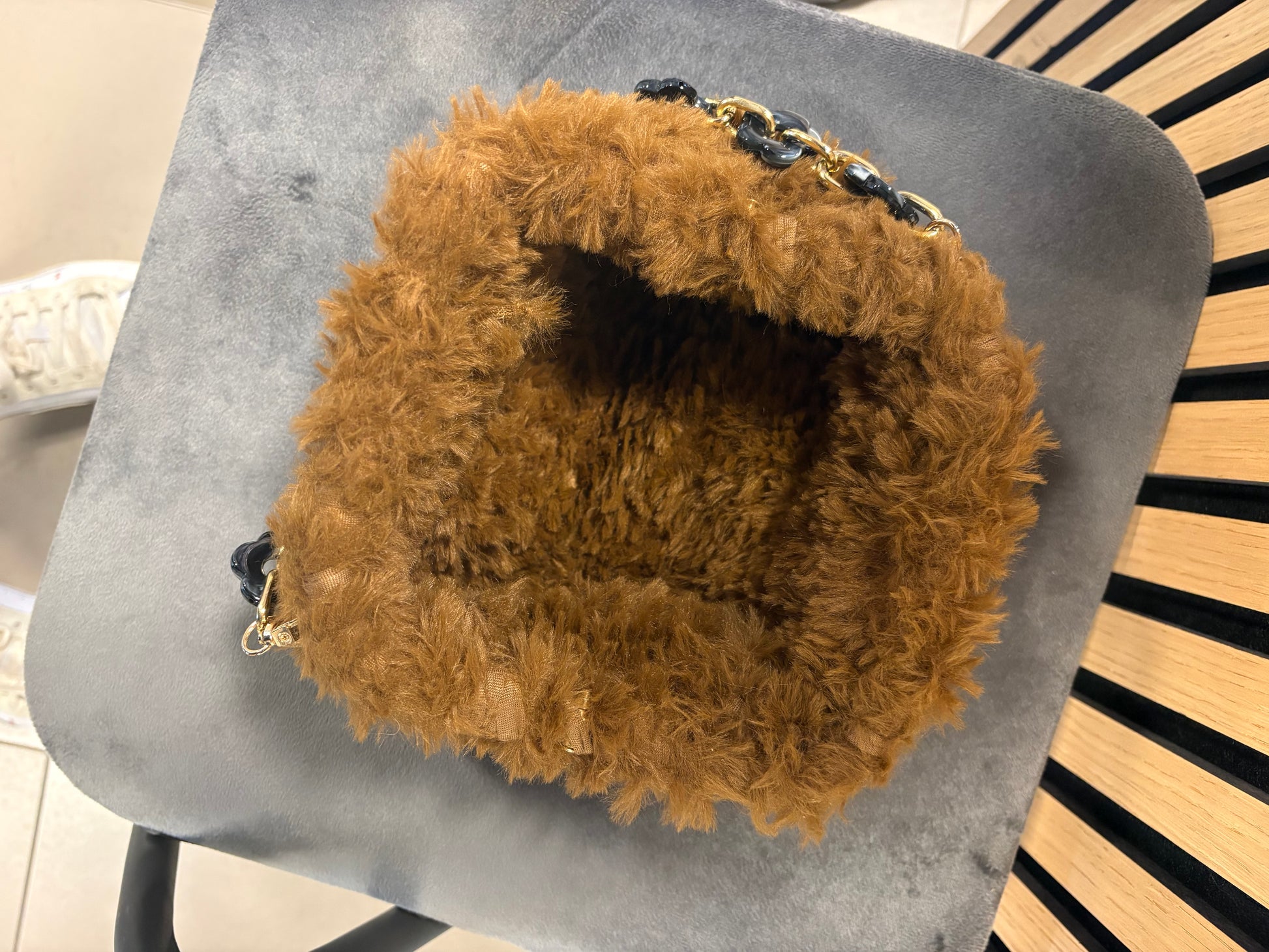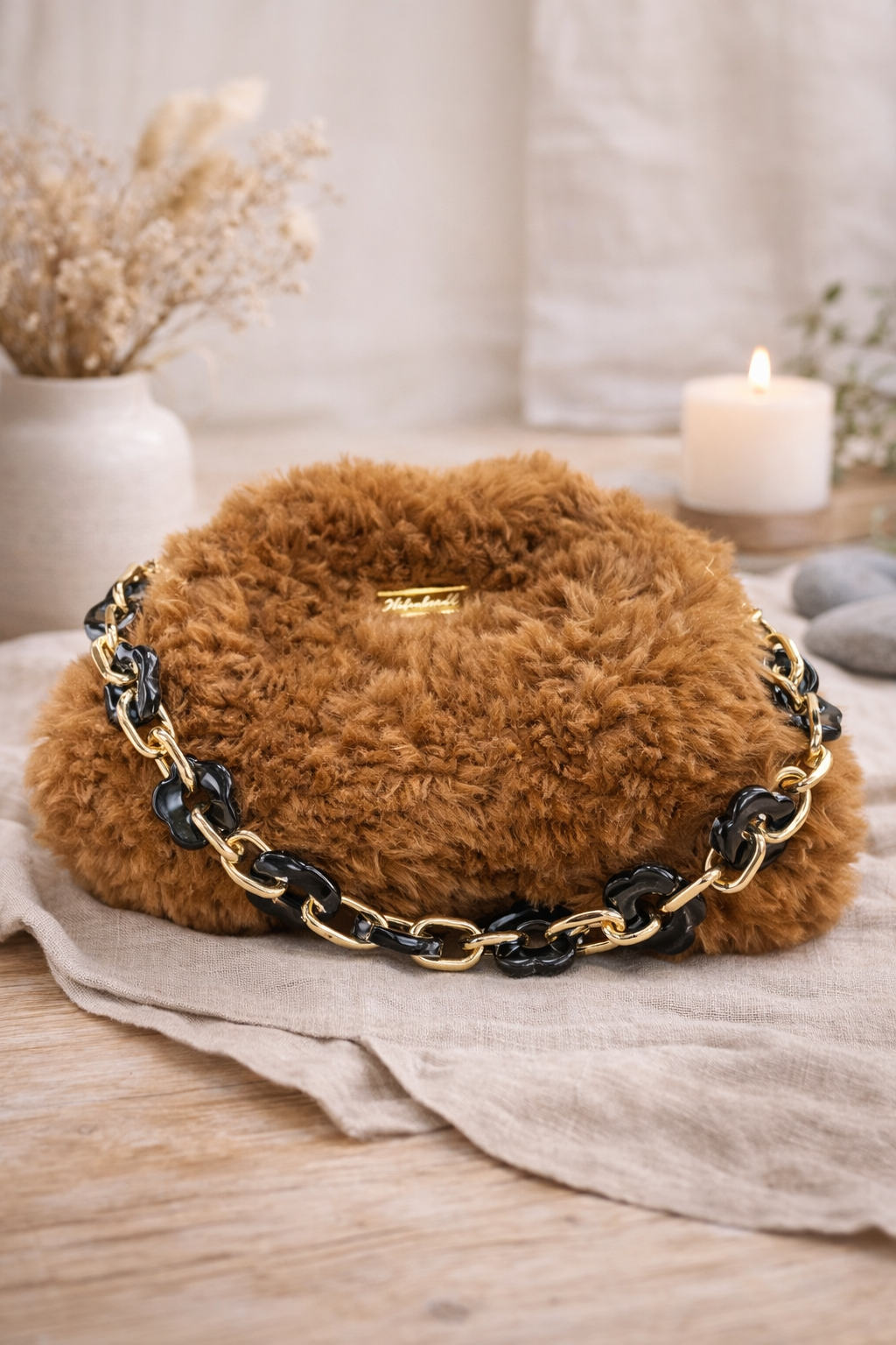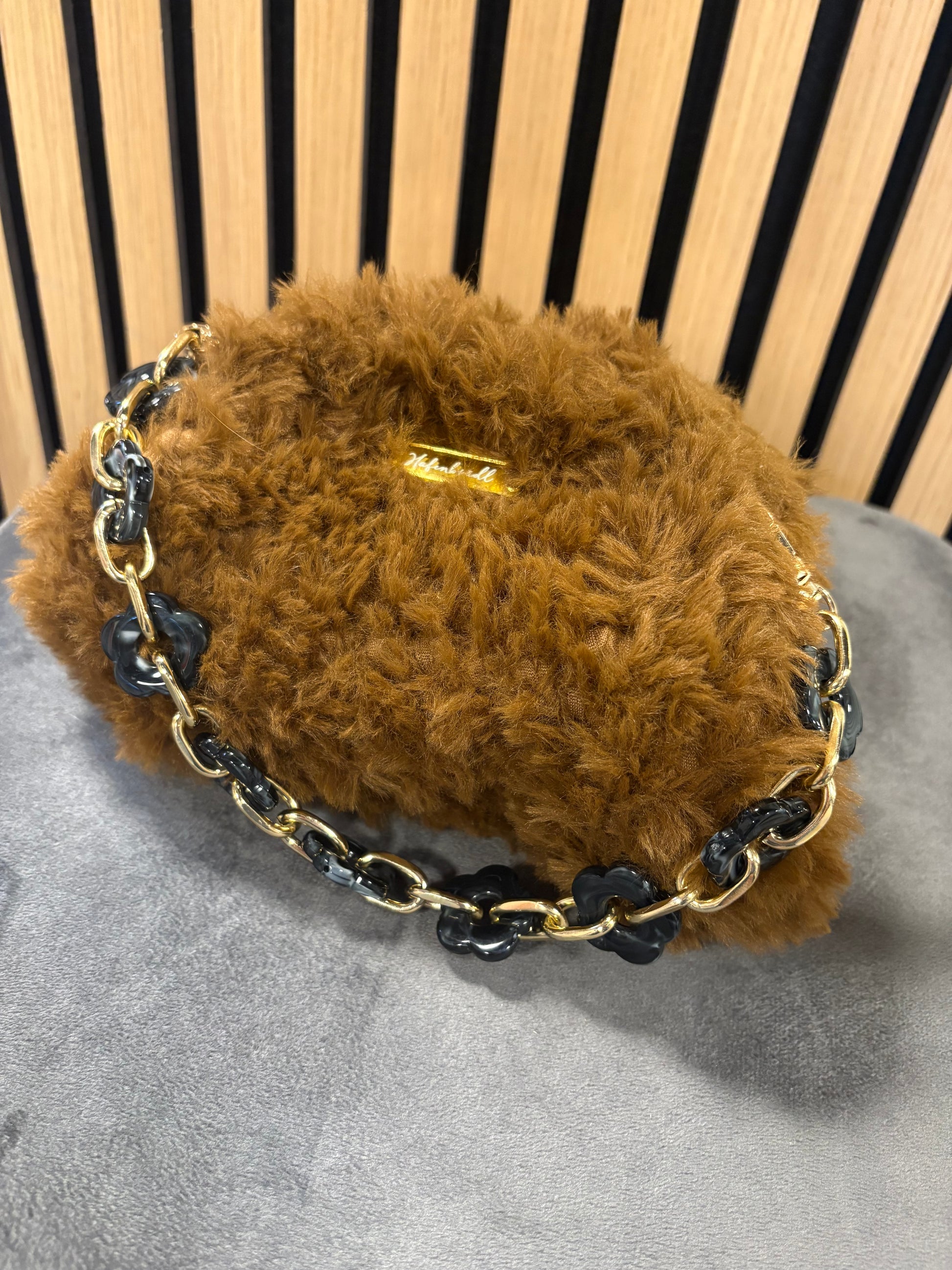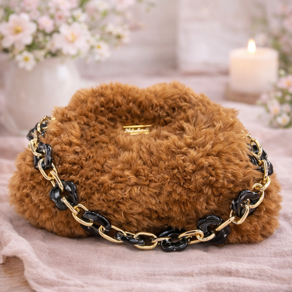 En liten veske med et mykt og lunt uttrykk.